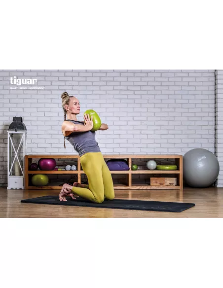 Piłka jest mała i odpowiednio miękka, jednak bardzo wytrzymała, a jej wykonanie jest solidne i trwałe tak, aby móc korzystać z niej w klubach fitness i studiach treningu, gdzie użytkowana jest przez wiele osób przez wiele godzin dziennie. Ovoball, dostępna w czterech wyjątkowych kolorach, to także kolejny ze sprzętów naszej marki tiguar niezawierający ftalanów. Również alergicy nie muszą martwić się o możliwość korzystania z piłki ovoball, ponieważ w jej składzie nie występuje lateks oraz dodatkowo została pokryta powłoką antyalergiczną. Piłkę ovoball mogą wykorzystywać osoby w każdym wieku i na każdym poziomie zaawansowania, maksymalny ciężar osoby ćwiczącej na piłce ovoball nie powinien przekraczać jednak 120 kg.