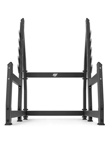 Do stojaka można przykręcić tuleje na obciążenia olimpijskie (dostępne jako osobny produkt MP-A001 2.0). Jeśli nie chcesz zamawiać ich od razu, nie ma żadnego problemu. Będziesz mógł je dokupić w każdym momencie u obsługi sklepu. Dzięki takiemu rozwiązaniu, dodatkowy ciężar masz zawsze pod ręką.