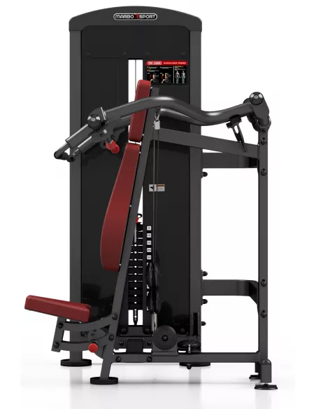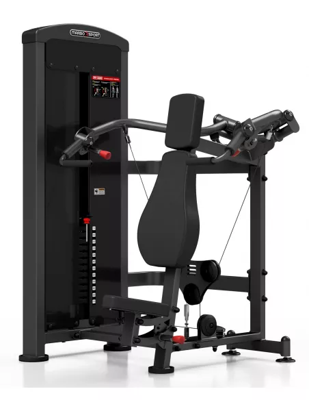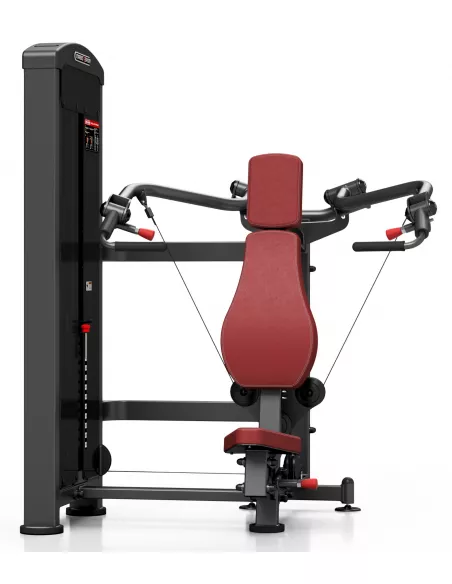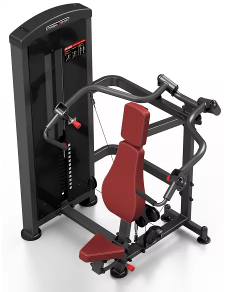 Dzięki użyciu najnowocześniejszych maszyn do formowania profili, stworzyliśmy produkt, który wyznacza nowe trendy designu sprzętu w tej kategorii cenowej. Dokładnie taka jest maszyna do wypychania na klatkę z nowej linii PROFESSIONAL. Do jej produkcji wykorzystaliśmy grube profile 80x40 mm o ściance 3 mm. Te materiały zapewnią maksymalną trwałość i wytrzymałość urządzenia. Dzięki zastosowaniu niezależnych od siebie ramion, maszyna pozwala maksymalnie spinać i rozciągać mięśnie podczas treningu.