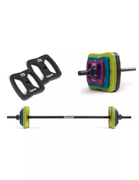 Zestaw składa się z ważącego 1.8 kg gryfu prostego, dwóch zacisków oraz kompletu talerzy o wagach 1.25 kg, 2.5 kg oraz 5 kg, a maksymalne waga sztangi z założonym pełnym obciążeniem wynosi 19.5 kg. Produkt stanowi idealny wybór zarówno dla osób początkujących, jak i tych bardziej zaawansowanych, które pragną zintensyfikować swój trening, wykorzystując w tym celu wolny ciężar z regulowanym obciążeniem. Rozwiązanie świetnie sprawdzi się w treningach grupowych, obwodowych i funkcjonalnych.