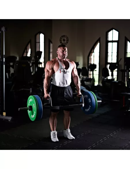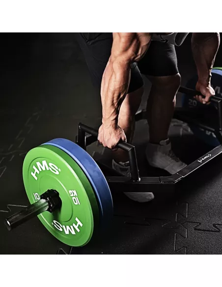CBR Talerz Olimpijski Bumper 10 kg HMS, pokryty gumą najwyższej jakości. Jego główne atuty to perfekcyjny odlew, estetyczne wykończenie oraz specjalne wyprofilowanie zapobiegające kręceniu się na gryfie. Talerze zostały wykonane z materiałów najwyższej jakości. Pokryte specjalną, grubą gumą, absorbującą każde uderzenie – dzięki czemu podczas upadku nie niszczy podłoża. Talerze CBR HMS osiągają, w zależności od wagi, od 75 do 96 punktów w skali Shore’a. Oznacza to, że talerze te osiągają dużo większą wytrzymałość, niż w przypadku tańszych, gumowanych talerzy dostępnych na rynku.