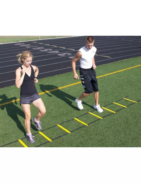 Drabinka koordynacyjna o długosci 8m. Wykonana z odpowiednio dobranych materiałów, prosta i wygodna w użyciu poprawia kondycję i zwinność, wpływa na wzmożenie koncentracji w trakcie wykonywania zadań oraz koordynację. Doskonale nadaje się do kształtowania szybkości, koordynacji oraz równowagi niezbędnej w różnych dyscyplinach sportowych. Kolejne szczeble drabinki możesz pokonywać biegiem lub skokami. Idealna do klubu sportowego, bądź szkoły.