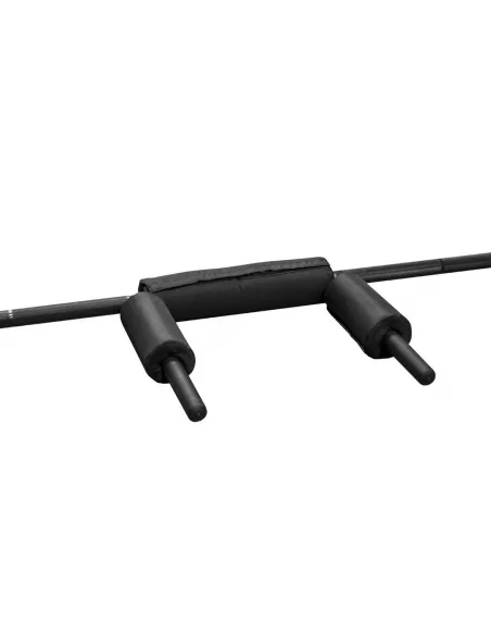 SQUAT+bar to rozwiązanie, które dzięki swojej geometrii powoduje zmianę rozkładu masy obciążonej sztangi. Obniżenie środka ciężkości zwiększa możliwość utrzymania równowagi, co wpływa na zwiększenie kontroli podczas wykonywania przysiadów. Gryf został wykonany przy zachowaniu standardów sztang olimpijskich jeśli chodzi o średnicę, materiał oraz parametry wytrzymałościowe. Wyposażony został w utwardzane chromem ruchome głowice oraz gryf wykończony czarnym ocynkiem zapewniającym najlepsze właściwości antykorozyjne.