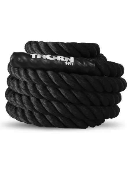 THORN fit Battle Rope 9m to doskonałe narzędzie do treningu siłowego oraz wytrzymałościowego. Ćwiczenia przy użyciu BR stymulują większość grup mięśniowych górnych partii ciała począwszy od ramion przez plecy jak również korpus. Średnica splotu fi 38 mm pozwala na pewny chwyt podczas treningów. Konstrukcja liny zakłada mocny splot skręcany na dedykowanej maszynie, który pozwala na zachowanie struktury podczas ćwiczeń. Do produkcji liny, użyty został gatunek tworzywa, który nie strzępi się podczas używania, a także nie chłonie potu tak jak lina wykonana z naturalnych włókien. Lina została zakończona tworzywem termokurczliwym zabezpieczającym przed rozplataniem się liny, które stanowią antypoślizgową rękojeść.