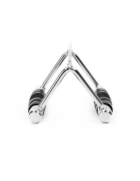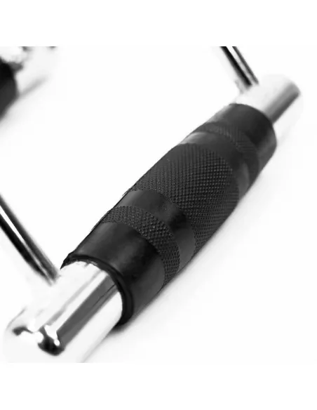 UW04 HMS to podwójny uchwyt przeznaczony do treningu na wyciągu górnym i dolnym. Służy do ćwiczenia mięśni grzbietu, ale sprawdzi się również w ćwiczeniach z połową sztangi ( druga połowa oparta o parkiet). Gryf idealnie wpasowuje się w środek uchwytu, umożliwiając swobodę wykonania ćwiczenia wiosłowania połową sztangi w opadzie tułowia. Trójkątna budowa uchwytu jest gwarancją idealnego ułożenia dłoni i wymuszenia przy tym prawidłowego ruchu w trakcie wykonywanego ćwiczenia. Ogumowana rękojeść zapewnia pewny chwyt oraz zapobiega wyślizgnięciu się przyboru z ręki, jednocześnie wymagając od nas mocniejszego chwytu. Dzięki temu pracujemy również nad rozbudową mięśni przedramienia. Niezbyt szeroki rozstaw rękojeści ułatwia utrzymanie prawidłowego toru ruchu, czyli prowadzenie łokci blisko tułowia. Wykonanie z wysokiej jakości stali pozwala na trening ze znacznym obciążeniem. Model UW04 pomoże łatwo i skutecznie rozbudować mięśnie grzbietu, które według niektórych są najważniejsze dla naszego układu mięśniowego.