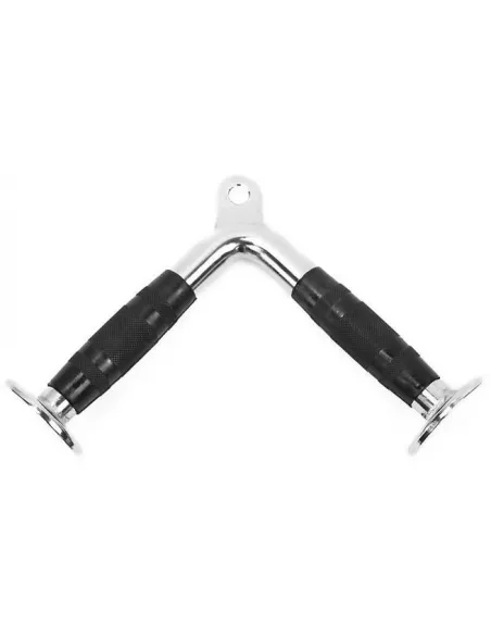 UW06 HMS to uchwyt trójkątny. Przeznaczony to wyciągu górnego, gdzie przymocowany, służy do ćwiczeń mięśnia trójgłowego ramienia, czyli tricepsa. Przy odpowiednim chwycie i ułożeniu ciała, można również wykorzystać go do treningu mięśnie brzucha. Uchwyt przymocowany do wyciągu dolnego świetnie nadaje się do ćwiczeń, które rozbudowują biceps. Jego trójkątny kształt umożliwia wykonanie ćwiczeń pod alternatywnym kątem do uchwytu prostego. Pozwala to na wykonanie efektywnego treningu oraz daje możliwość pełnego rozwoju całego mięśnia i wszystkich jego głów mięśniowych. Ogumowana rękojeść zapewnia pewny i komfortowy chwyt. Dzięki temu możemy skupić się na dokładnym wykonaniu ćwiczeń, nie przejmując się tym, że uchwyt wyślizgnie się z rąk. Wykonany jest z wysokiej jakości stali, co daje możliwość treningu ze znacznym obciążeniem. Model UW06 HMS pomoże w doskonały sposób zróżnicować i uzupełnić trening bicepsa oraz tricepsa, a także skutecznie rozbudować mięsnie.