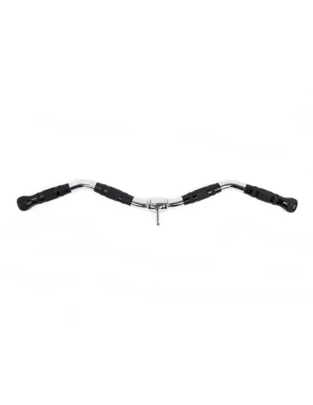 UW13 HMS to drążek przeznaczony do treningu na wyciągu górnym i dolnym. Można wykorzystać go do całej gamy ćwiczeń na różne grupy mięśniowe górnych partii ciała zaczynając od małych grup mięśniowych, jak biceps i triceps, przez przedni i boczny akton mięśni naramiennych, aż po mięśnie najszersze oraz prostownik grzbietu. Długość drążka oraz rozstaw rękojeści dają możliwość ćwiczeń na wąskim i szerokim uchwycie. Skutkuje to efektywnym treningiem. Rękojeści ustawione są pod kątem. Dzięki temu w trakcie każdego ćwiczenia angażują alternatywne przyczepy mięśniowe w stosunku do prostego uchwytu. Ogumowana rękojeść pozwala na pewny oraz komfortowy chwyt, co zapobiega wyślizgnięciu się przyboru z rąk. Uchwyt wykonany jest ze stali. Umożliwia to trening ze znacznym obciążeniem. Model UW13 HMS pomoże łatwo i symetralnie rozbudować swoje mięśnie.