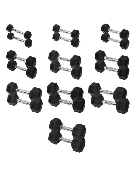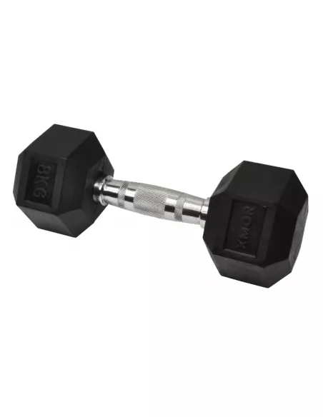 Solidne hantle marki XMOR FITNESS o heksagonalnym kształcie, spełnią oczekiwania zarówno profesjonalistów jak i początkujących. Szeroka gama obciążeń sprawia, że każdy znajdzie obciążenie jakiego poszukuje. Dzięki hantlą hex XMOR FITNESS poprawisz swoją siłę oraz koordynację. Budowa i kształt hantlii sprawia, że są one wygodne w użyciu i nie przemieszczają się podczas treningu a ogumowane głowice w znacznym stopniu zmniejszają hałas, uszkodzenia podłogi oraz uszkodzenia samej hantli. Wskaźnik wagi na każdej hantli w znaczny sposób ułatwi i przyspieszy odszukanie potrzebnej hantli o danym obciążeniu. W skład zestawu wchodzi hanta: 2 x 1 kg, 2 x 2 kg, 2 x 3 kg, 2 x 4 kg, 2 x 5 kg, 2 x 6 kg, 2 x 7 kg, 2 x 8 kg, 2 x 9 kg i 2 x 10 kg.