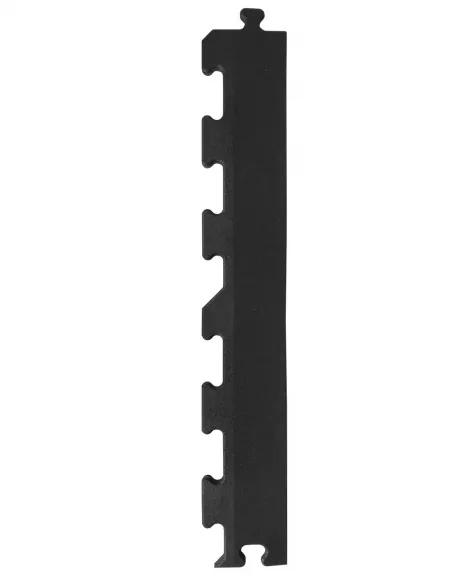 Zakończenia do puzzli marki XMOR w formie skosów (łagodnych spadów do podłoża): środkowe. Standardowy zestaw skosów obejmuje zakończenia środkowe i narożne, które wymagają indywidualnej adnotacji co do ilości. Zakończenia dostępne w kolorze czarnym dla grubości 15 mm.