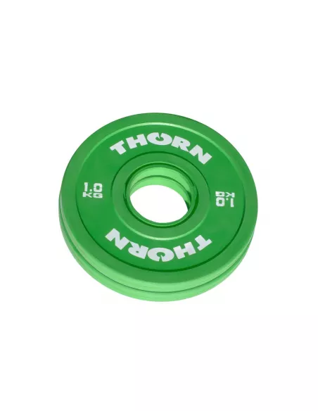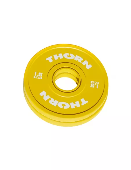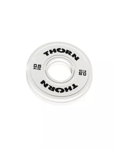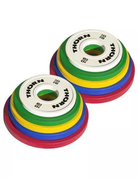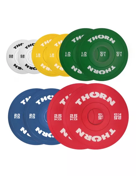 Zaprojektowany aby przełamywać bariery i pomagać osiągać indywidualne rekordy, nasze talerze oferują zwiększanie wagi od 0,5 do 2,5kg. Ze średnicą otworu o wymiarze 50,4mm, te zaawansowane obciążenia są kompatybilne z każdym standardowym gryfem olimpijskim a kolorystyka samych krążków jest zgodna ze standardami IWF. Talerze frykcyjne THORN fit mają wysokiej jakości matowe wykończenie i specjalną gumową powłokę wyposażoną w dodatkową elastyczną obejmę zapewniającą doskonałą przyczepność i minimalizującą ruch talerzy na głowicy gryfu podczas ćwiczeń.