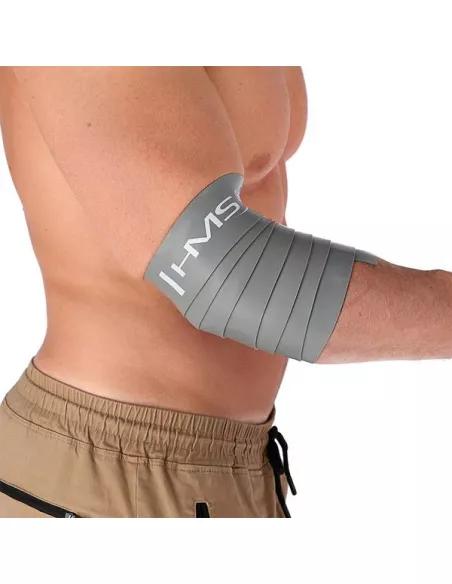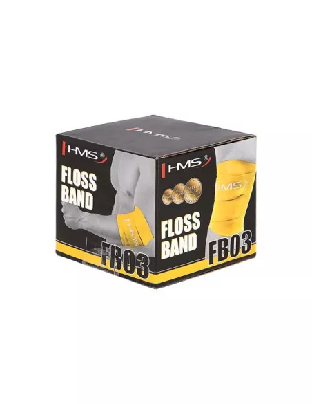 FB03 HMS to specjalistyczna guma do usprawniania działania stawów, zwiększania ich mobilności i ruchomości, zmniejszania obrzęków, przywracania swobodnego poślizgu pomiędzy powierzchniami tkanek, a także zwiększenia przepływu krwi w danym obszarze ciała. Powinna znaleźć się w torbie każdego sportowca. Zastosowanie FB03 HMS jest bardzo proste, wystarczy owinąć gumą konkretne miejsce, staw lub mięsień i zacząć wykonywać ruchy aktywne bądź pasywne w danym stawie albo takie, które będą kurczyć i rozciągać określony mięsień. Podczas owijania się taśmą staramy się utrzymać około 70% jej naciągu. Zbyt lekkie owinięcie nie przyniesie efektów a zbyt mocne może doprowadzić do urazów. Bezpieczny czas po którym powinno się odwinąć taśmę to około 1.30 do 2 minut. FB03 HMS można wykorzystać także do treningu okluzyjnego, w którym blokujemy dopływ krwi do ćwiczącego mięśnia, wprowadzając go w stan hipoksji. Dzięki takiemu treningowi możemy doprowadzić do hipertrofii mięśniowej wykorzystując jedynie od 20 do 50% ciężaru maksymalnego. FB03 HMS to idealne rozwiązanie dla ludzi aktywnych fizycznie, niezależnie od dziedziny uprawianego sportu.