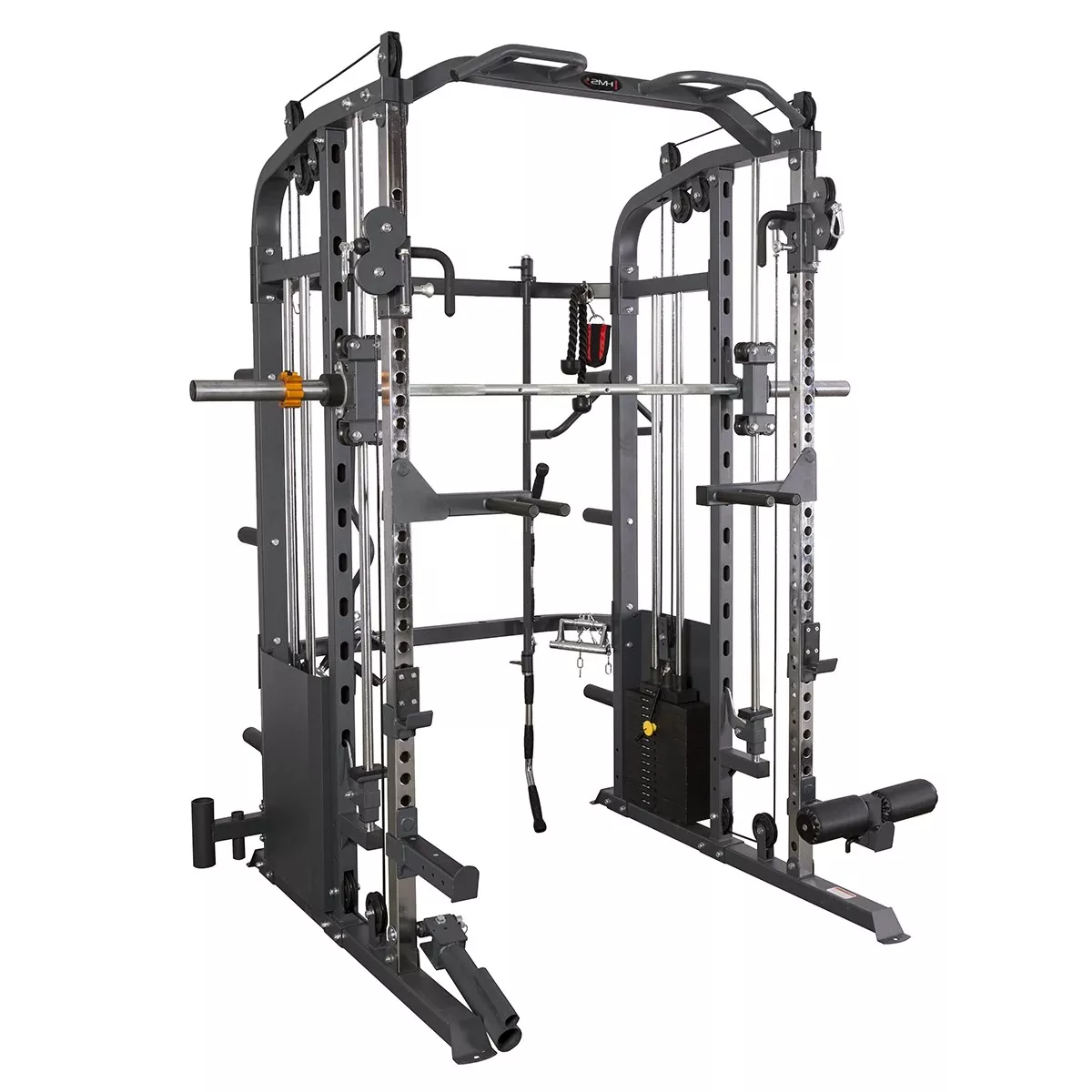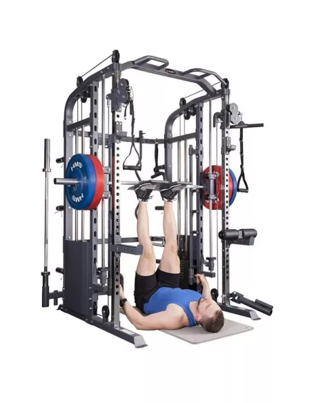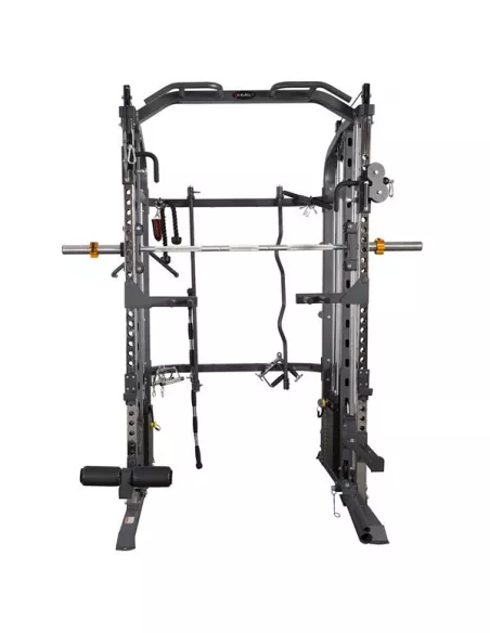 Przedstawiamy suwnice o nazwie CYKLOP 2 HMS która jest stabilnym urządzeniem klasy Semi Commercial. Sprzęt idealnie nadaje się do użytku komercyjnego w małych klubach fitness a także w warunkach domowych. To urządzenie łączące klasyczną Suwnicę Smitha z wyciągami dzięki którym trening będzie wykonany w 100%.