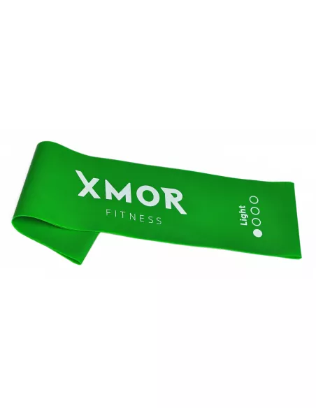 Guma mini band szeroka XMOR FITNESS lekka to guma o obwodzie 61 cm, która ma zastosowanie w różnego rodzaju ćwiczeniach. Dzięki wszechstronności i dużej skuteczności jest stosowana przez sportowców w różnych dyscyplinach, począwszy na lekkiej atletyce aż po gry zespołowe w tym między innymi w piłce nożnej. Ze względu na swój rozmiar i kształt nadaje się do ćwiczeń rozgrzewkowych, rehabilitacyjnych i aktywacyjnych. Taśma jest dedykowana wszystkim osobom trenującym – na każdym poziomie zaawansowania. Zwiększona szerokość gum minimalizuje rolowanie się ich podczas treningu.