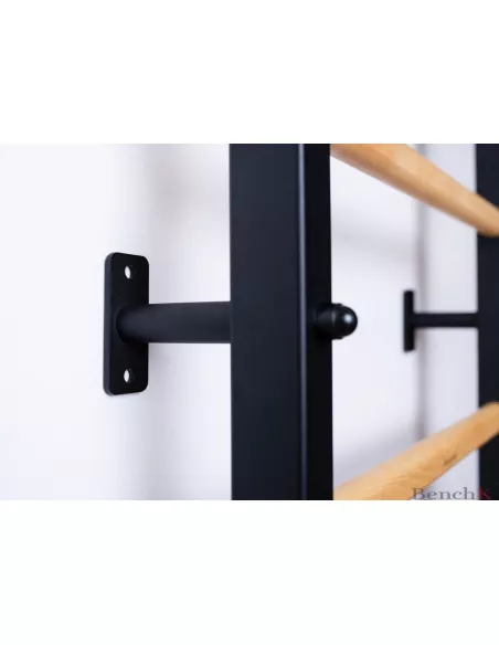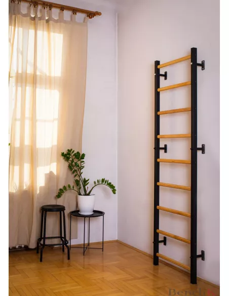 Drewniano – metalowa drabinka sportowa 700B to solidna i praktyczna konstrukcja zapewniona dzięki jakościowym surowcom i nowoczesnej technologii. Drabinka znakomicie sprawdzi się w każdym pomieszczeniu. Zadbaliśmy nawet o najdrobniejsze szczegóły w naszej drabince, wszystkie elementy metalowe są malowane proszkowo (czarny mat) a szczebelki zostały wykonane z litego drewna bukowego (ręcznie olejowane). Metalowe prostokątne profile 40 x 50 mm o grubości 2 cm.