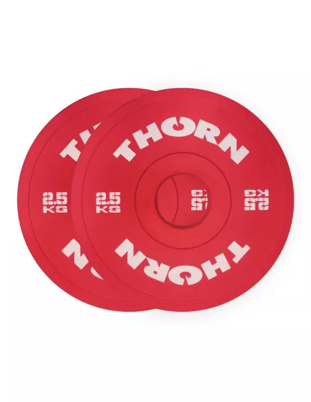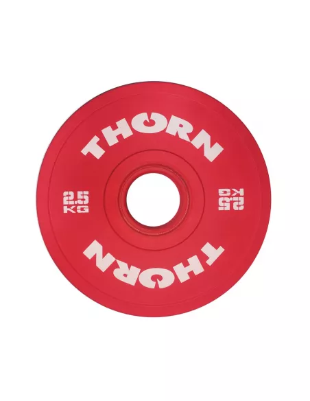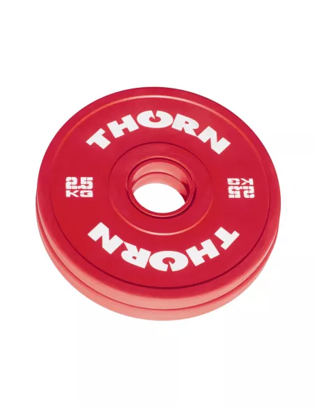 Zaprojektowany aby przełamywać bariery i pomagać osiągać indywidualne rekordy, nasze talerze oferują zwiększanie wagi od 0,5 do 2,5kg. Ze średnicą otworu o wymiarze 50,4mm, te zaawansowane obciążenia są kompatybilne z każdym standardowym gryfem olimpijskim a kolorystyka samych krążków jest zgodna ze standardami IWF. Talerze frykcyjne THORN fit mają wysokiej jakości matowe wykończenie i specjalną gumową powłokę wyposażoną w dodatkową elastyczną obejmę zapewniającą doskonałą przyczepność i minimalizującą ruch talerzy na głowicy gryfu podczas ćwiczeń.