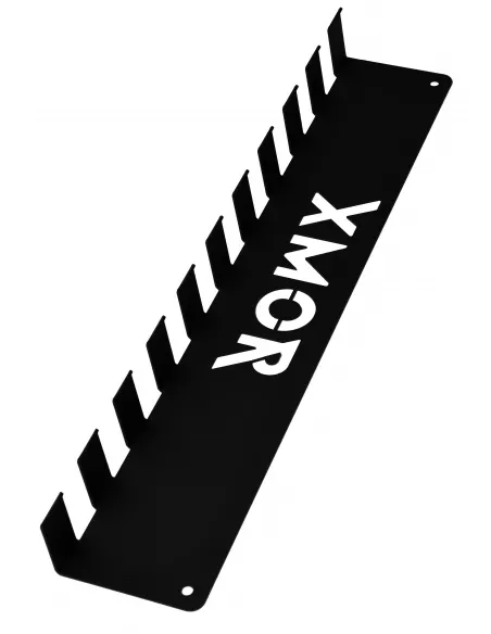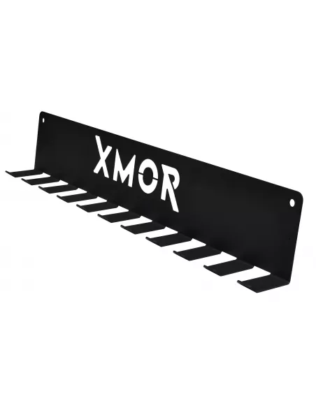 Wieszak na akcesoria marki XMOR, który ułatwi utrzymanie porządku na siłowni, klubie fitness lub domowej siłowni. Wieszak przeznaczony na akcesoria takie jak: skakanki, gumy mini bands, gumy power bands itp. Wieszak montowany do ściany wyposażony w 11 wygodnych uchwytów, wykonany z wysokiej jakości stali malowanej proszkowo.