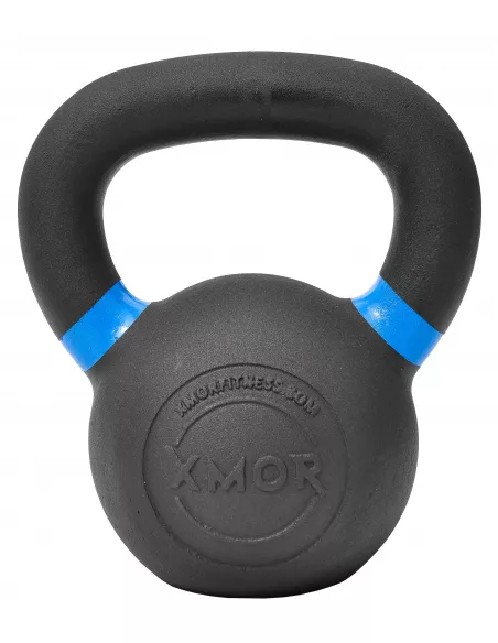 Kettlebell wykonany z trwałego żeliwa marki XMOR, hantla posiada atrakcyjny kształt i ergonomiczny uchwyt, który zapewnia komfort podczas treningu. Idealnie nadaje się do treningu crossfit, siłowego, w domu i na siłowni. Trening z obciążeniem kettlebell zapewnia ogólnorozwojowy trening funkcjonalny, który zwiększy siłę jednocześnie wzmacniając następujące partie mięśni: nogi, plecy, brzuch, klatkę piersiową, ręce oraz barki. Estetyczne wykończenie hantli zapewnia malowanie proszkowe, które ułatwia utrzymanie się talku na rączce. Kettle zostały wyposażone w kolorowe oznaczenia wagi na rączkach co umożliwia szybkie rozróżnienie wersji wagowej, waga w kg/lb została również oznaczona na tyle odważnika, na przedniej części znajduje się wytłoczone logo XMOR.