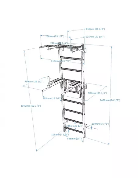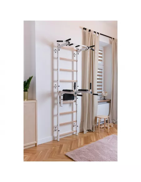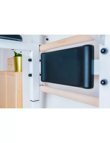 Szczeble wykonane z litego drewna bukowego nie są lakierowane a są ręcznie olejowane dwoma warstwami organicznego oleju niemieckiego, na bazie oleju lnianego który jest dopuszczalny do kontaktu z żywnością. Dzięki wykorzystaniu elementów z naturalnego litego buka udało stworzyć nowoczesny mebel sportowy, który idealnie pasuje do wnętrz domów, mieszkań, stref relaksu biur.
