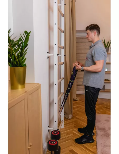 Drabinka BenchK 700W stworzona została z myślą o osobach, które chcą pracować nad swoją sylwetką w zaciszu swojego domu. Maksymalna waga osoby ćwiczącej przy pomocy drabinki może wynosić aż 150 kg. Drabinka BenchK 700W pozwala wykonywać wiele różnorodnych ćwiczeń, zajmując przy tym niewiele miejsca. Jej montaż jest bardzo łatwy, a design przemyślano tak, aby pasował do aktualnych trendów aranżacji wnętrz, nie zaburzając ogólnego wystroju mieszkania.
