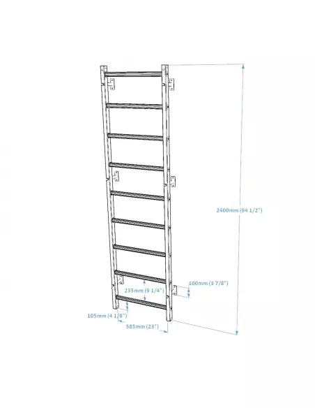 Zawiera zestaw do montażu (oprócz kołków i wkrętów, gdyż ich rodzaj należy dobrać w zależności od rodzaju ściany do której będzie mocowana). Montaż do ściany nie jest możliwy do ścianki działowej cieńszej niż 12 cm oraz do ściany gips-karton. Decyzja i odpowiedzialność o sposobie montażu drabinki leży po stronie klienta.