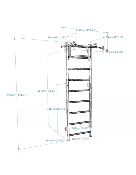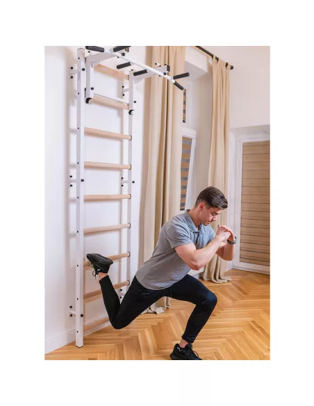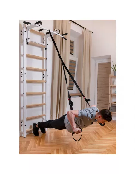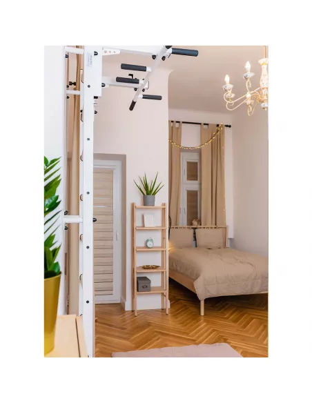 Możliwość rozbudowania drabinki w dodatkowy osprzęt pozwoli otrzymać kompaktową siłownię na 1 m2 powierzchni użytkowej.