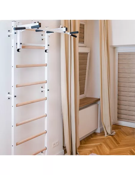 Drabinka gimnastyczna BenchK 731W to połączenie drabinki BenchK 310W/710W ze zdejmowanym drążkiem do podciągania PB 710W. Wielofunkcyjny drążek do podciągania PB 710W posiada haki z filcowym podkładem.