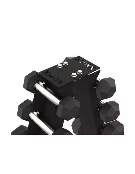 Solidny stojak wolnostojący marki XMOR FITNESS na hantle typu HEX lub hantle chromowane.