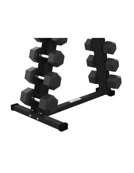 Stojak pomieści zestaw hantli 2x 1-10 kg (2 x 1 kg, 2 x 2 kg, 2 x 3 kg, 2 x 4 kg, 2 x 5 kg, 2 x 6 kg, 2 x 7 kg, 2 x 8 kg, 2 x 9 kg i 2 x 10 kg)