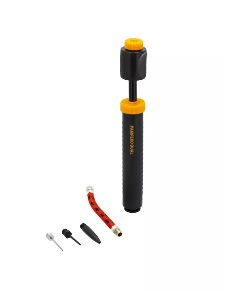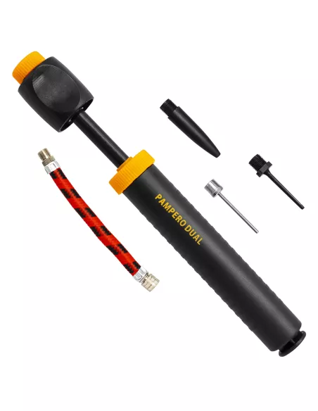 PAMPERO DUAL to pompka, której nie może zabraknąć na rodzinnym wyjeździe, biwaku i podczas campingu. Bez problemu napompujesz materac, zagłówek turystyczny i inne niezbędne akcesoria. Śpij wygodnie, bez zmartwień i ciesz się największym komfortem! Dzięki uniwersalnym końcówkom dopasujesz ją także do każdej piłki - siatkowej, do koszykówki czy piłki nożnej. A jeśli wybierasz się na rower, nie zapomnij spakować ze sobą podręcznej pompki PAMPERO DUAL. Z nią wyeliminujesz problem z miękką dętka.