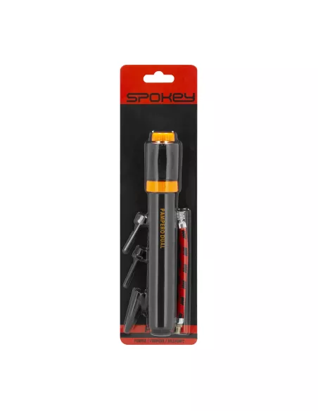 Spokey PAMPERO DUAL to uniwersalna pompka ręczna z wyjątkową funkcją dwukierunkowego pompowania. Powietrze napełnia się zarówno podczas wpychania, jak i pociągania dźwigni, co oszczędza energię i skraca czas pompowania! To dlatego każdy fan jazdy na rowerze czy hulajnodze, sportów drużynowych, takich jak piłka nożna i siatkówka, a także miłośnik biwaków i kempingów powinien mieć ją pod ręką. Dzięki PAMPERO DUAL szybko i sprawnie napompujesz każdą piłkę, oponę i niejeden materac!