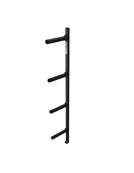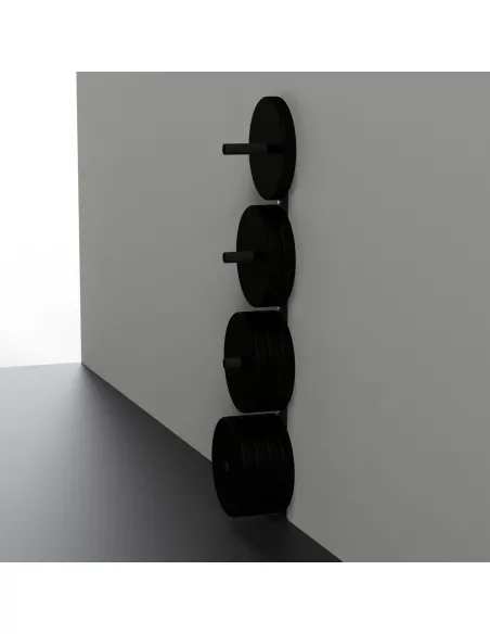 Dzięki wieszakowi ściennemu można zaoszczędzić cenną przestrzeń na podłodze. Został on wyposażpny w 4 uchwyty rozmieszczone tak aby swobodnie można było umieścić na nim talerze o różnej wielkości. Montuje się go na ścianie, co daje możliwość przechowywania obciążeń w wygodny sposób, nie zajmując dodatkowej przestrzeni. Każda tulejka może pomieścić talerz olimpijski o średnicy maksymalnej 460mm, przy wykorzystaniu wszystkich słupków jednocześnie.