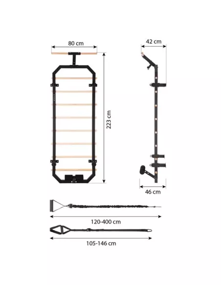 Wielofunkcyjna drabinka DW2708 to idealne rozwiązanie dla osób, które chcą ćwiczyć w domu. Zestaw składa się z drabinki gimnastycznej, która mocuje się do ściany, a także specjalnych gum oraz taśm. Produkt jest wykonany z wysokiej jakości stali i ma 8 szczebli z drewna bukowego. Drabina ma wysokość 223 cm i szerokość 80 cm, dzięki czemu każda osoba może na niej ćwiczyć.