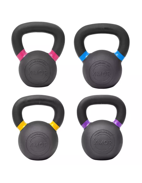 Kettlebell wykonane z trwałego żeliwa marki XMOR FITNESS, posiadają atrakcyjny kształt i ergonomiczny uchwyt, który zapewnia komfort podczas treningu. Idealnie nadają się do treningu crossfit, siłowego, w domu i na siłowni. Trening z obciążeniami kettlebell zapewnia ogólnorozwojowy trening funkcjonalny, który zwiększy siłę jednocześnie wzmacniając następujące partie mięśni: nogi, plecy, brzuch, klatkę piersiową, ręce oraz barki. Estetyczne wykończenie hantli zapewnia malowanie proszkowe, które ułatwia utrzymanie się talku na rączce. Kettle zostały wyposażone w kolorowe oznaczenia wagi na rączkach co umożliwia szybkie rozróżnienie wersji wagowej, waga w kg/lb została również oznaczona na tyle odważnika, na przedniej części znajduje się wytłoczone logo XMOR.