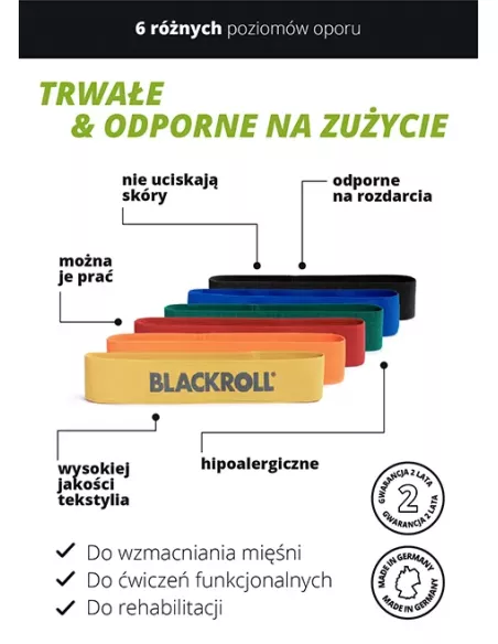 BLACKROLL® LOOP BAND został stworzony z opatentowanego przyjaznego dla ciała materiału gwarantującego komfort użytkowania bez nieprzyjemnego uczucia ciągnięcia i podrażniania skóry.