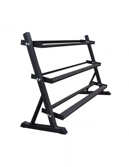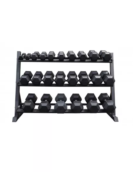 Stojak mieści aż 12 par hantli, co sprawia, że doskonale sprawdzi się zarówno w profesjonalnych siłowniach, jak i w prywatnych strefach treningowych. Dzięki wytrzymałej stalowej konstrukcji i wysokiej jakości wykonaniu gwarantuje stabilność oraz bezpieczeństwo nawet przy dużych obciążeniach – umożliwia przechowywanie zestawów hantli o wadze od 2,5 kg do 30 kg.