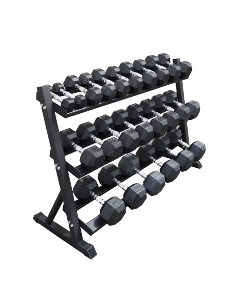 - Wysoka pojemność – mieści do 12 par hantli typu HEX