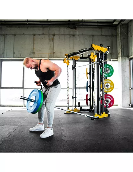 z wbudowanym gryfem, która umożliwia bezpieczne wykonywanie ćwiczeń takich jak przysiady czy wyciskanie