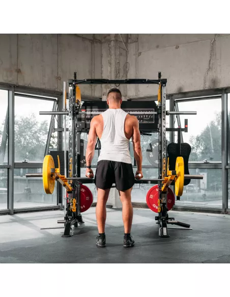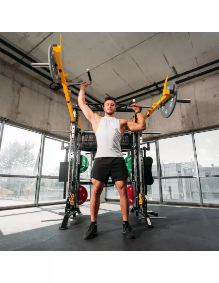z wbudowanym gryfem, pozwalającą na wykonywanie ćwiczeń izolowanych z większym ciężarem. Dzięki systemowi bezpieczeństwa możesz ćwiczyć aż do upadku mięśniowego