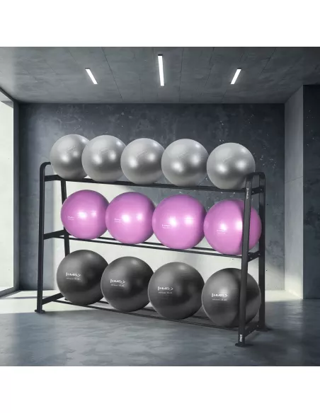 STR43 to funkcjonalny i pojemny stojak na piłki treningowe, który pozwala na uporządkowane i wygodne przechowywanie kilkunastu piłek w różnych rozmiarach. Dzięki trzem poziomom i dużej długości, oferuje sporą przestrzeń do przechowywania.