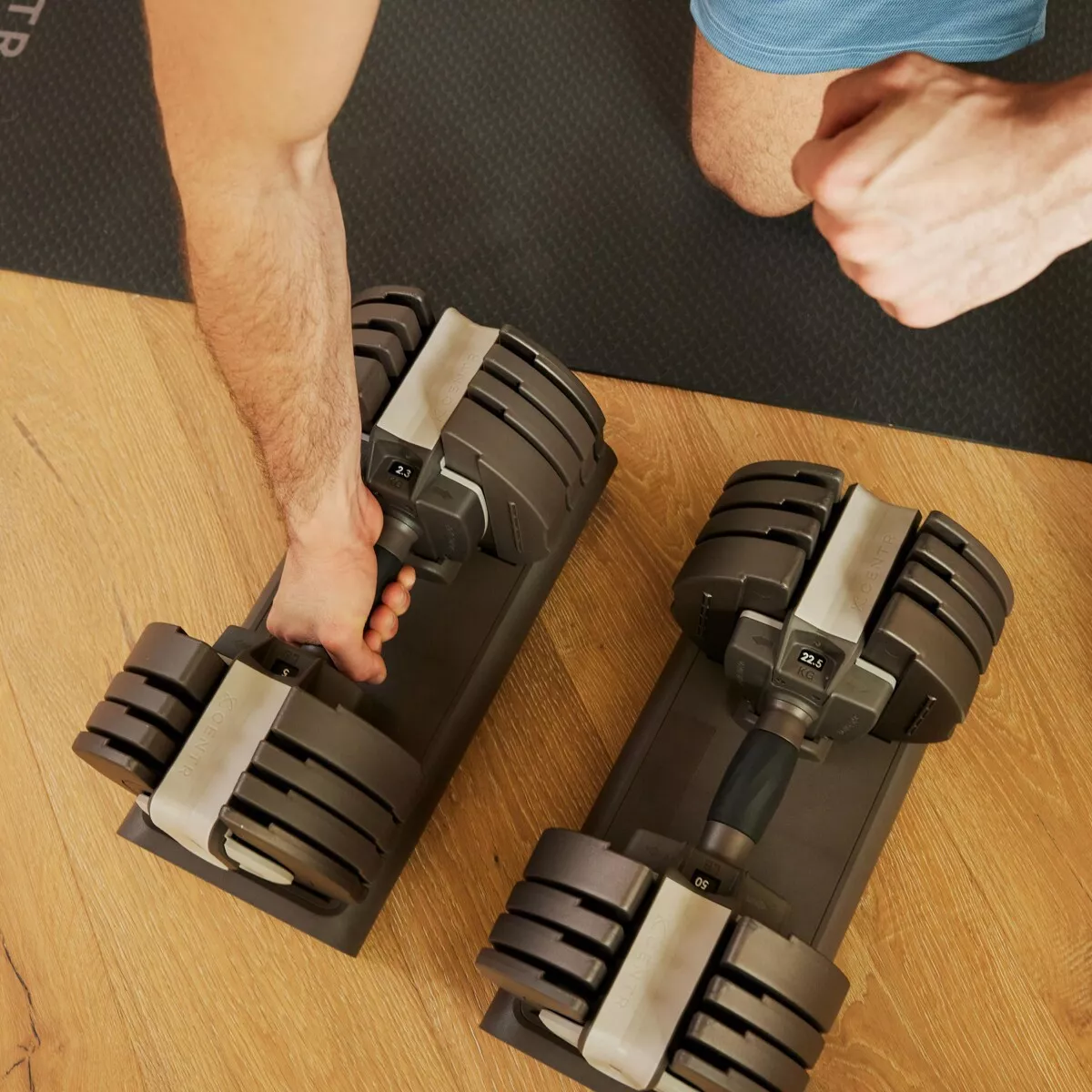Para Hantli Centr Smart Stack 50 – Regulowane hantle 5–50 lbs (2 sztuki po 22,5 kg). Kompletny zestaw do treningu siłowego w domu