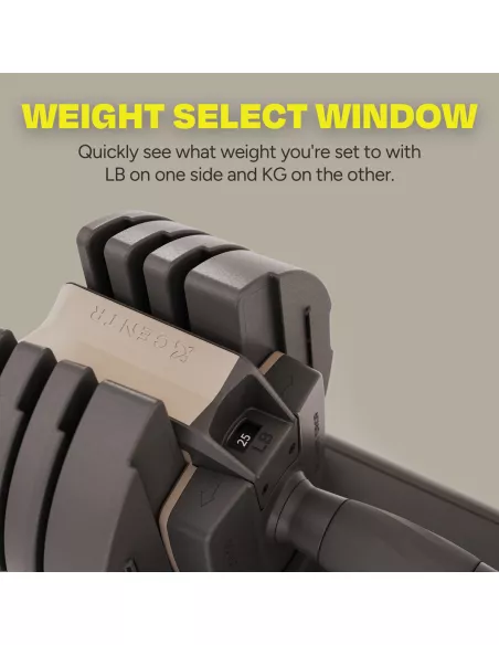 | Zakres wagi | 2,3–22,5 kg / 5–50 lbs (na każdy hantel) |