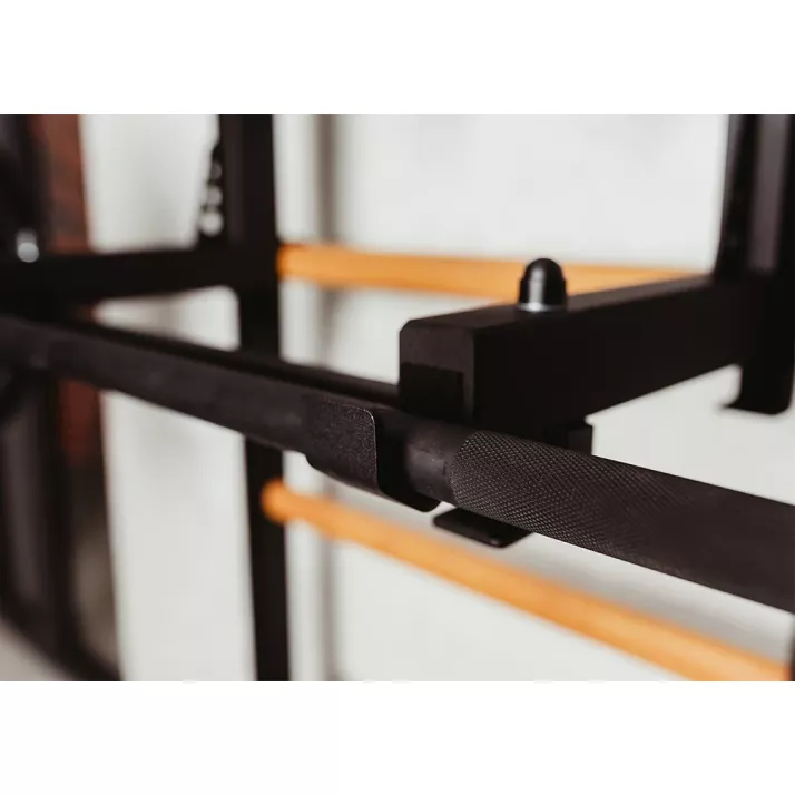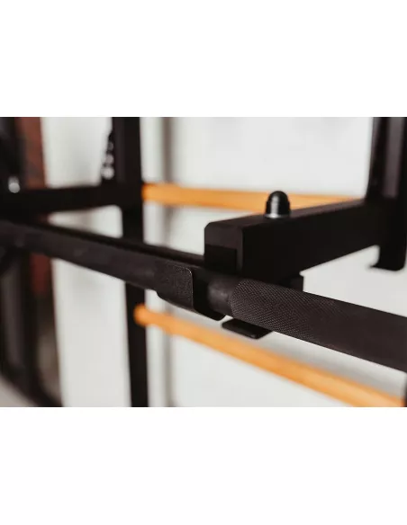 ma haki z filcowym podkładem co pozwala regulować jego wysokość lub zmieniać pozycję. Do regulacji drążka potrzebna jest jedna osoba dorosła. Po jego obróceniu można wykorzystać go jako uchwyt pod sztangę. Maksymalna waga sztangi z obciążeniem wynosi 200 kg.