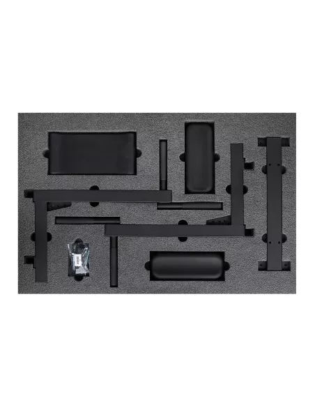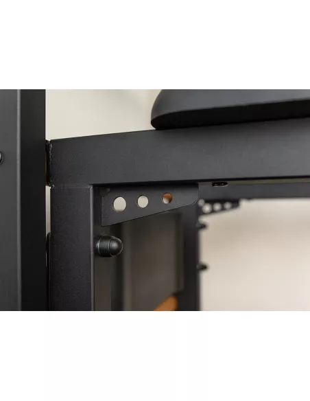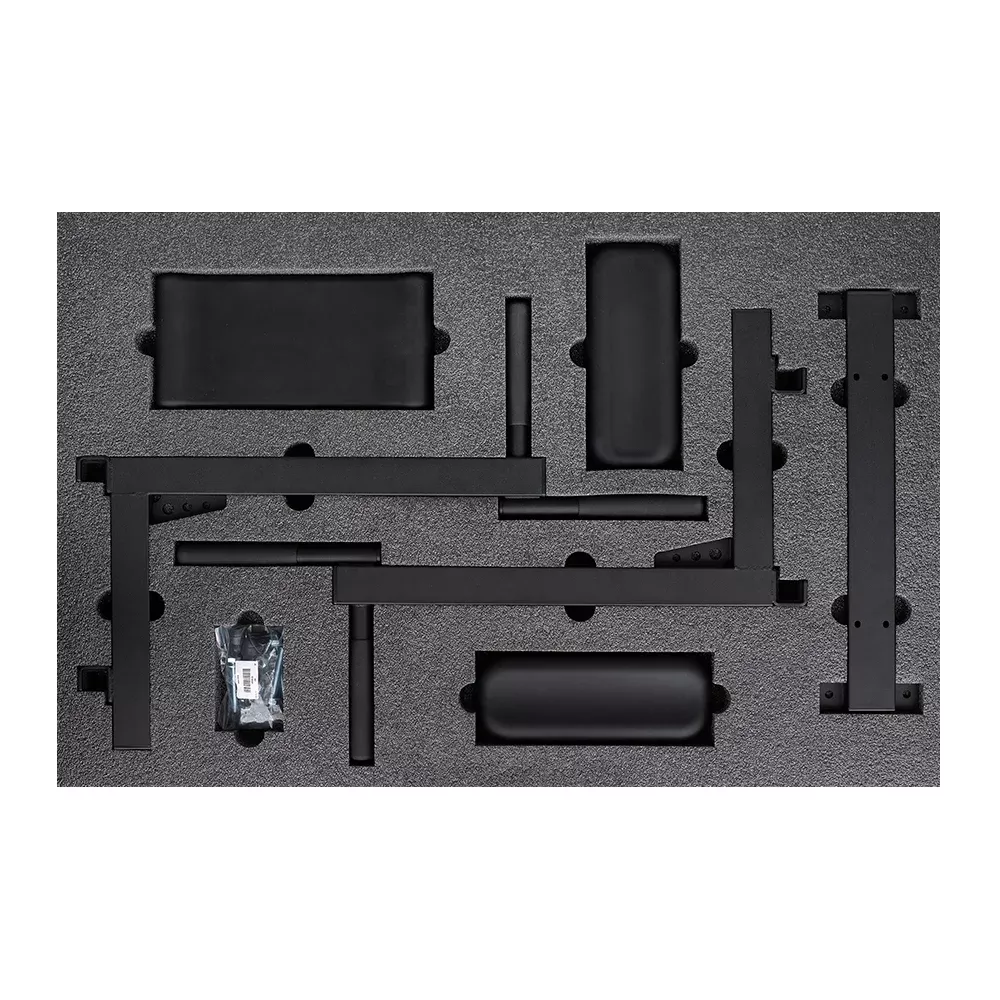 ma podłokietniki i podkład pod plecy z integralnej pianki poliuretanowej. To gwarantuje wytrzymałość, łatwość pielęgnacji i nowoczesny wygląd. Każdy z dodatkowych elementów może zostać dostosowany do wysokości osoby ćwiczącej albo usunięty w razie potrzeby.