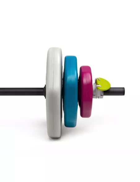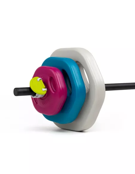 Gryf z kompletem obciążeń to idealne rozwiązanie na trening grupowy. Niezależnie od płci i wieku, trening ze sztangą dedykowany jest każdemu, kto chce zwiększyć wytrzymałość siłową mięśni, spalić tkankę tłuszczową oraz wyrzeźbić sylwetkę. W zależności od poziomu zaawansowania ćwiczącego oraz partii mięśniowej odpowiednio dobiera się wagę talerzy. Zaletą jest heksagonalny kształt obciążeń zapobiegający toczeniu się sztangi oraz uchwyty w talerzach umożliwiające dodatkowe ćwiczenia.